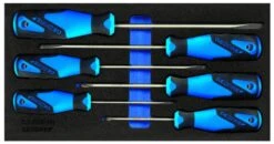 Jedes Werkzeug liegt verrutschsicher in eigener Aussparung, durch Griffmulden leicht herausnehmbar
