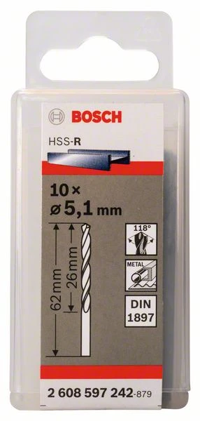 Bosch Karosseriebohrer HSS-R, DIN 1897, 5,1 X 26 X 62 Mm, 10er-Pack (2 608 597 242)