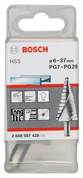 Bosch Stufenbohrer HSS, Für Kabelverschraubungen, 6 – 37 Mm, 10 Mm, 93 Mm, 12 Stufen (2 608 587 428)