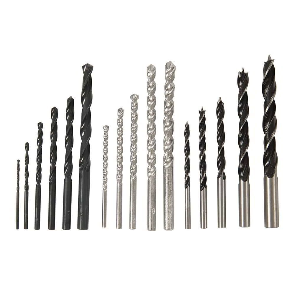Bohrersortiment zum Bohren in Metall, Kunststoff und Holz. Satz enthält sechs HSS-Bohrer in den Größen 2, 3, 4, 5, 6 und 8 mm, fünf HM-Bohrer in den Größen 4, 5, 6, 8 und 10 mm sowie fünf Holzbohrer in den Größen 4, 5, 6, 8 und 10 mm.